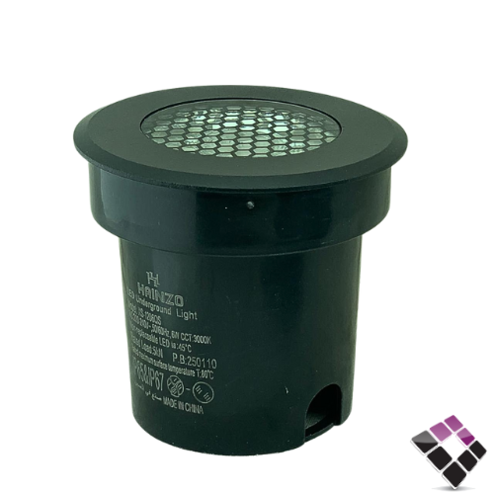 كشاف LED خارجي دفن أرضي معزول ضد الماء مدور مع مانع توهج شبك خلية لون أسود عيون اضاءة أصفر 8سم × 6W رقم 2202C-BK-6W