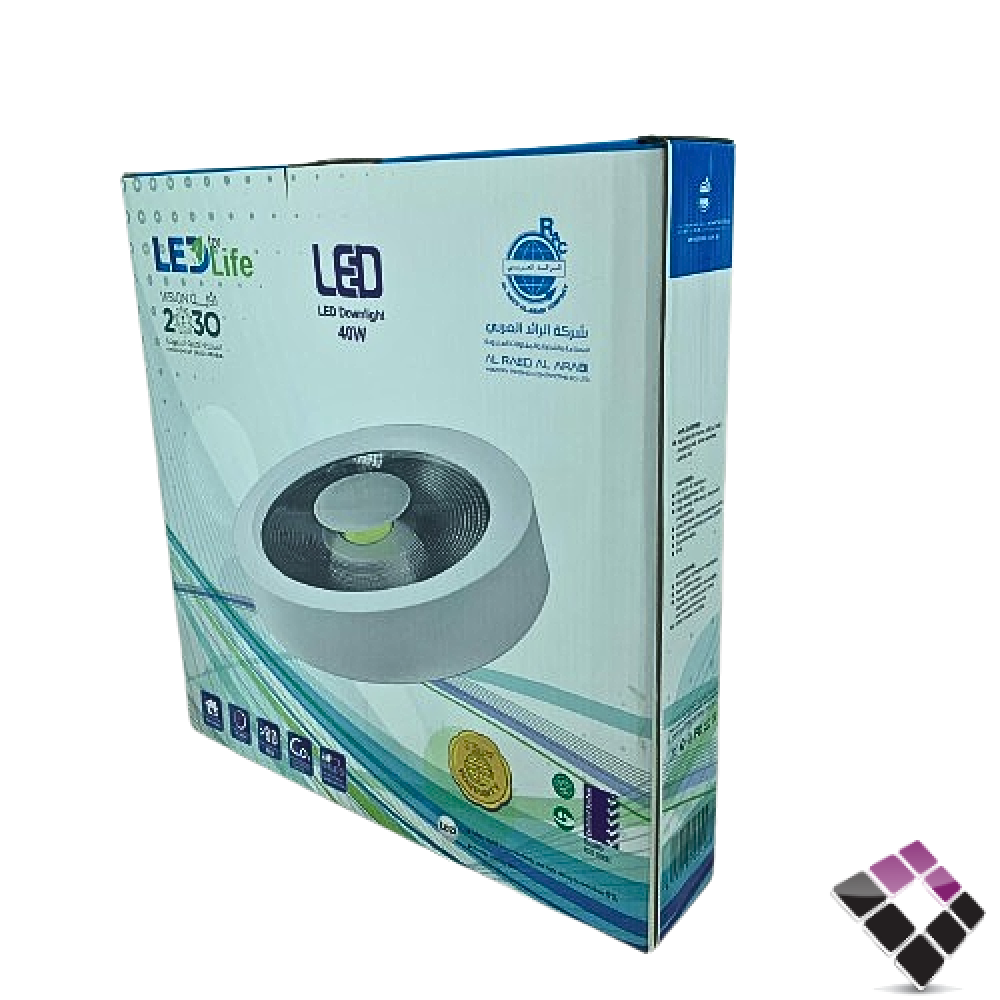 كشاف LED خارجي لطش عدسة COB كوب 12"×30 سم AL RAED AL ARABI الرائد سعودي جرم أبيض المنيوم إضاءة 4000K كريمي 40W