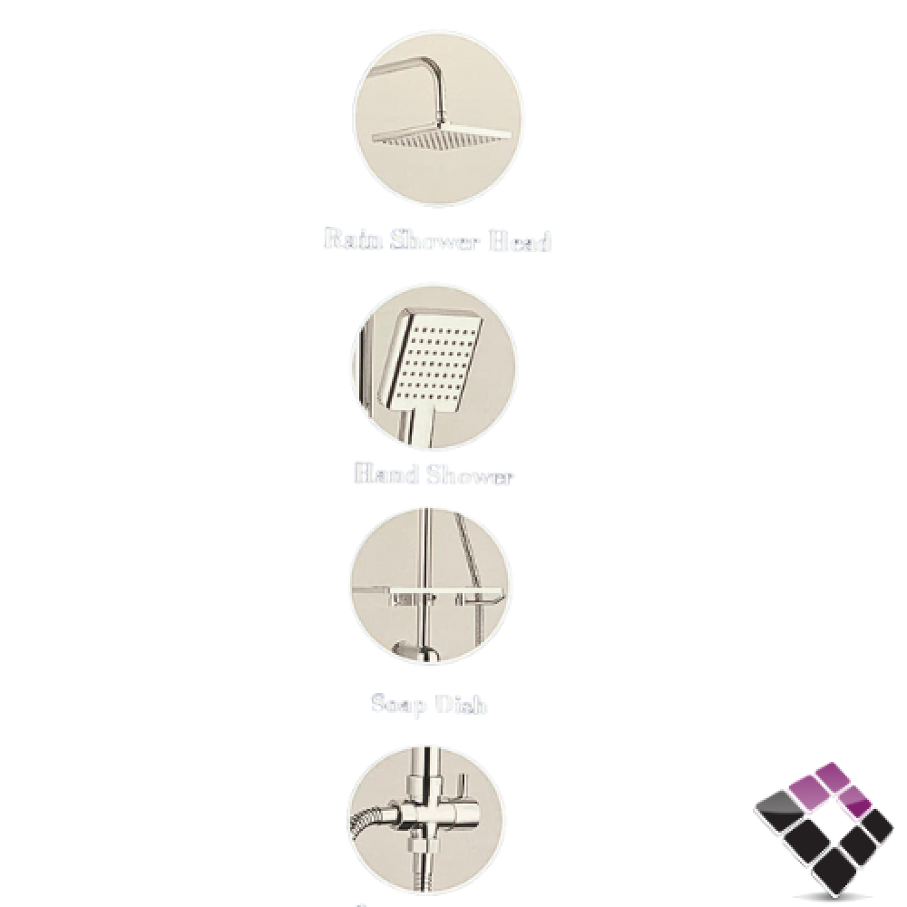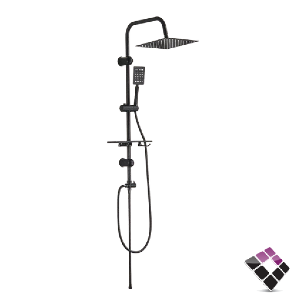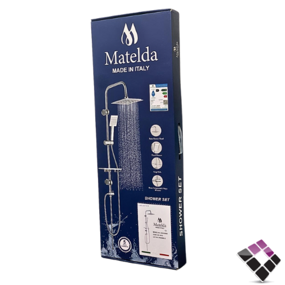 طقم شاور دش MATELDA ايطالي لون أسود عمود + طاسة مطري مربعة مع لي و سماعة رقم 0073B