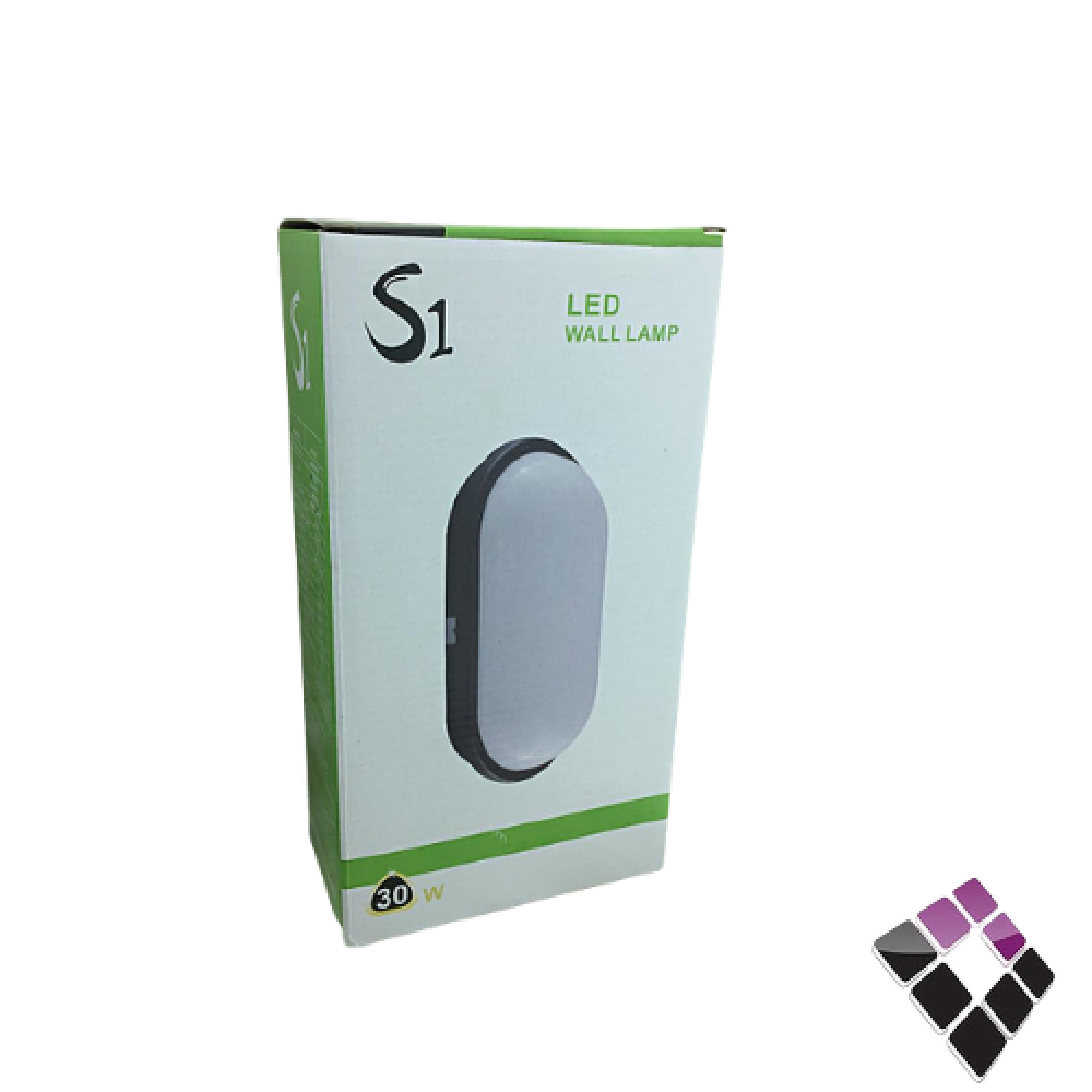 ابلك جداري لطش LED بيضاوي سادة كبير S1 جرم اسود اضاءة ابيض 30W..