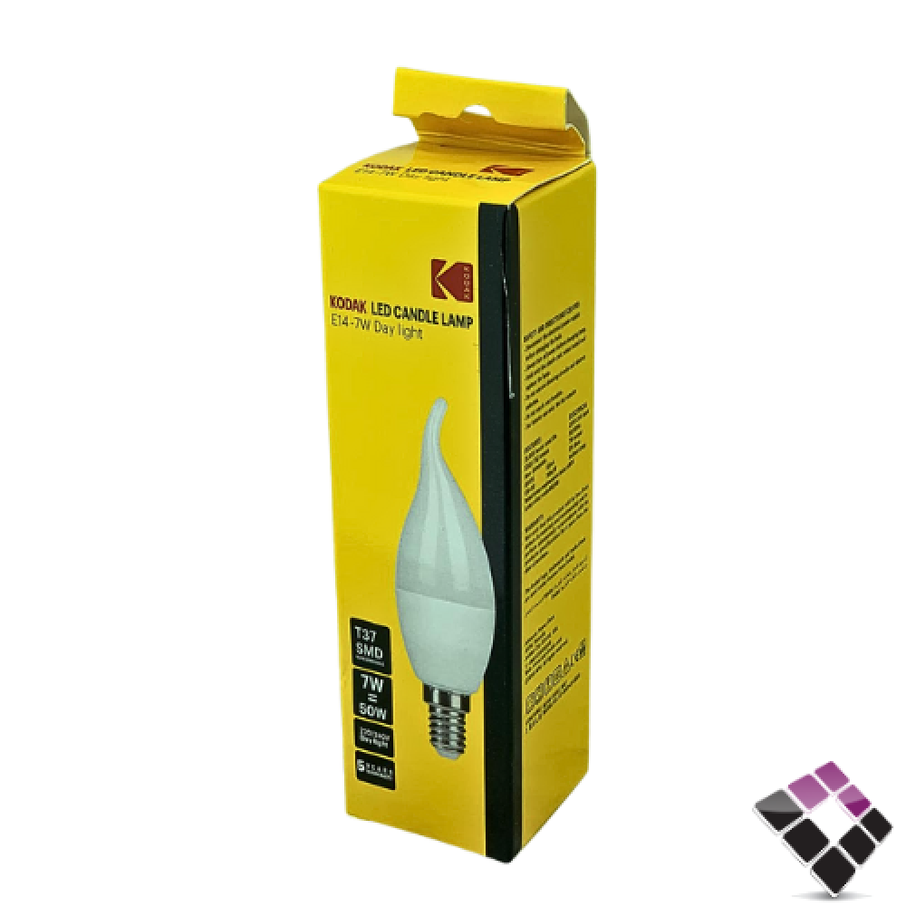 لمبة بلح LED مثلج معكوف موديل شمعة KODAK صيني مقاس E14 إضاءة 7W أبيض 6500K رقم KC-SMD-07-6500