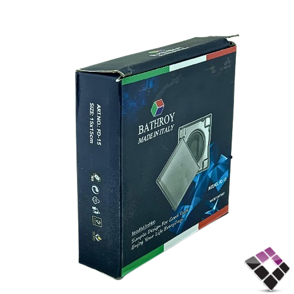 صفاية مفرغة للبلاط استيل SS304 لون كروم BATHROY ايطالي مقاس 15×15 رقم 6702025