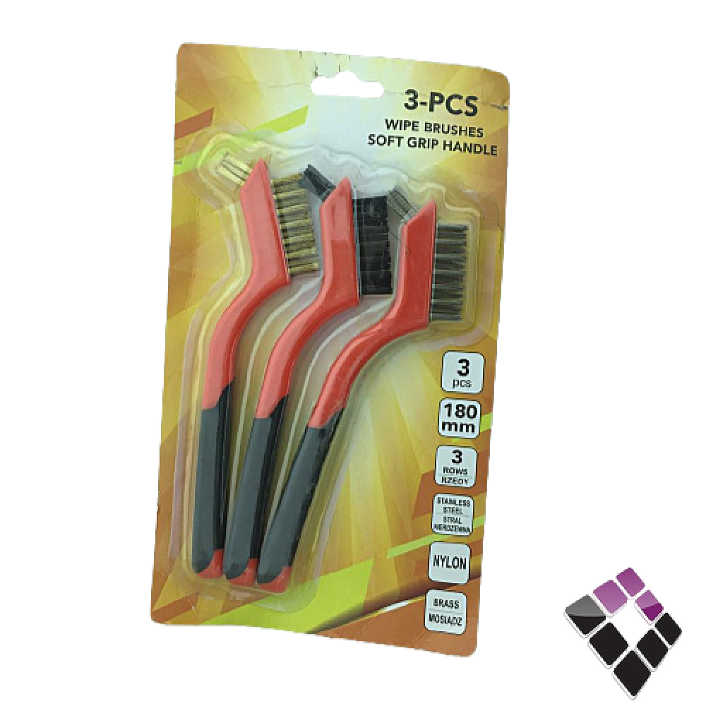 طقم فرشة صنفرة سلك حديد + نحاس يد بلاستك صيني عدد 3 مقاس 180 ملم.