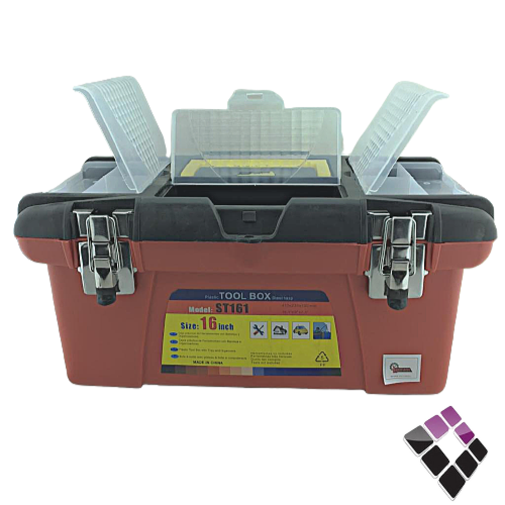 شنطة عدة LAURANT صيني بلاستيك لون أحمر + أسود + قفل حديد مقاس 16أنش رقم ST161