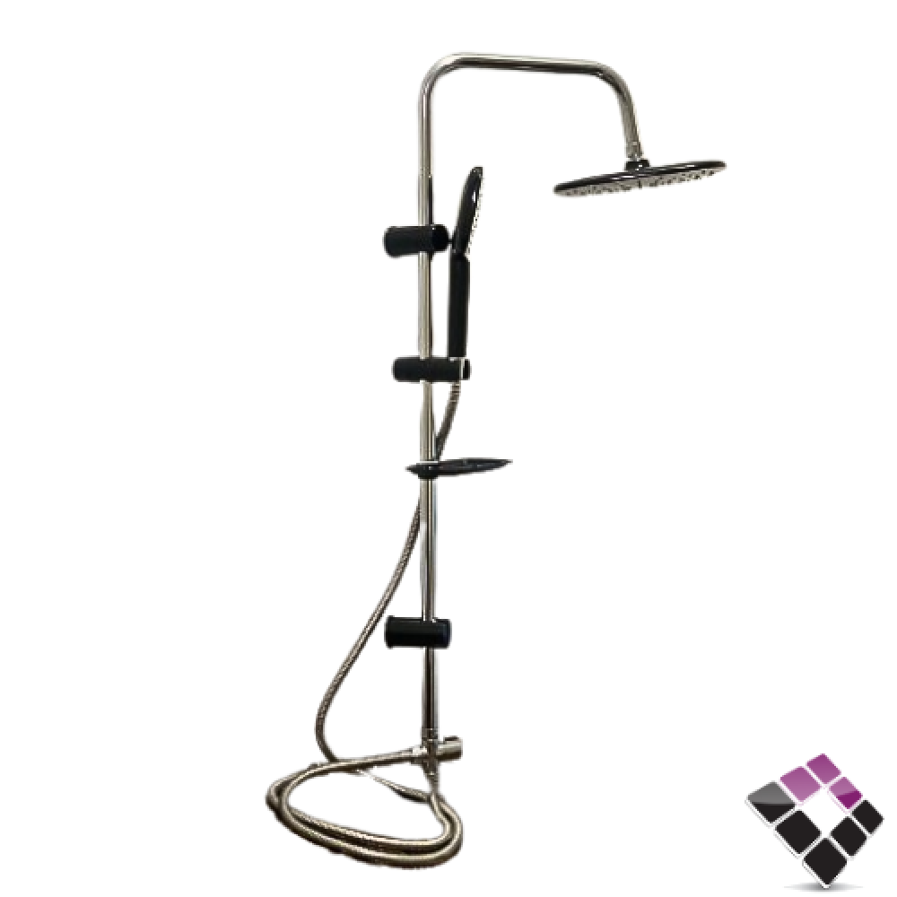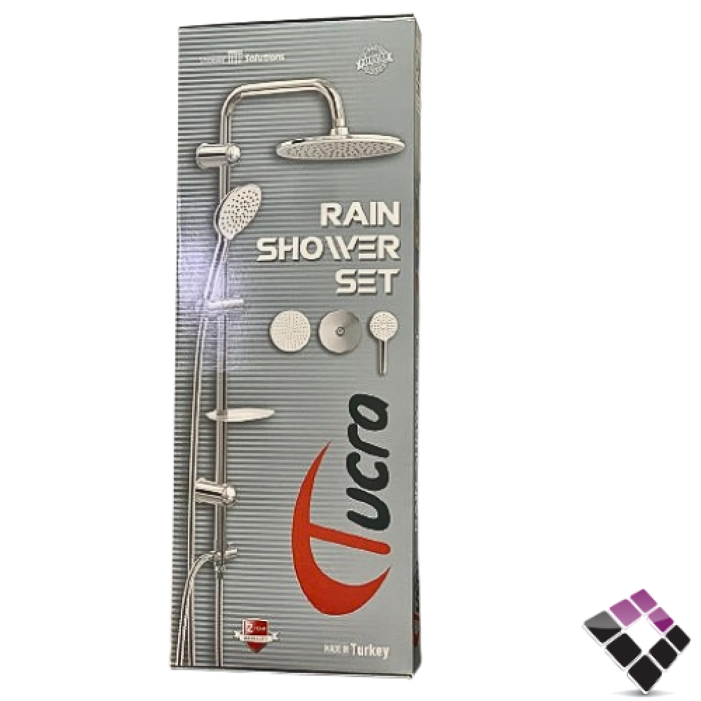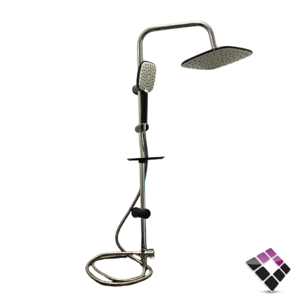 طقم شاور دش تركي TUCRA عمود كروم + طاسة مربعة 24سم لون أبيض + أسود مع لي و سماعة + صبانة رقم 22077