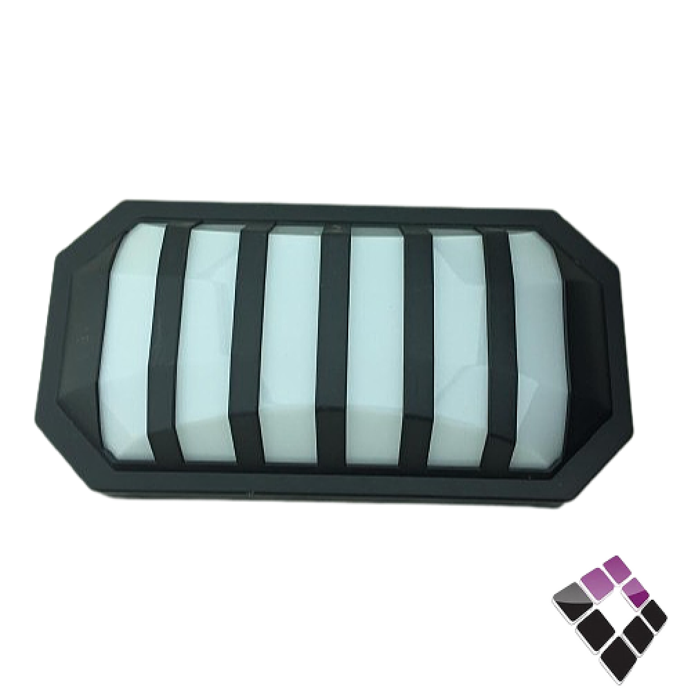 ابلك جداري مستطيل لطش LED سادة كبير + شبك عرضي بلاستيك أسود همر HUMMER صيني جرم أسود اضاءة أصفر 24W رقم HU-2328D/24W/3000K