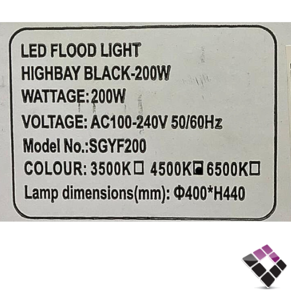 كشاف LED هنجر هاي بي TOPLR شريحة SMD بروجكترإضاءة 4000K كريمي لومن 24000LM سطوع عالي 200W