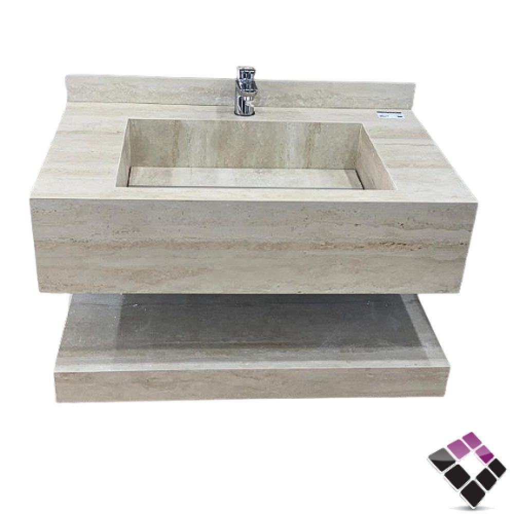 مغسلة كبينة + حوض حجر رخام موديل شلال Orient standard صيني معلق لون بيج رخام ترفنتينو + رف سفلي 80CM بدون مراية رقم/ OS250123