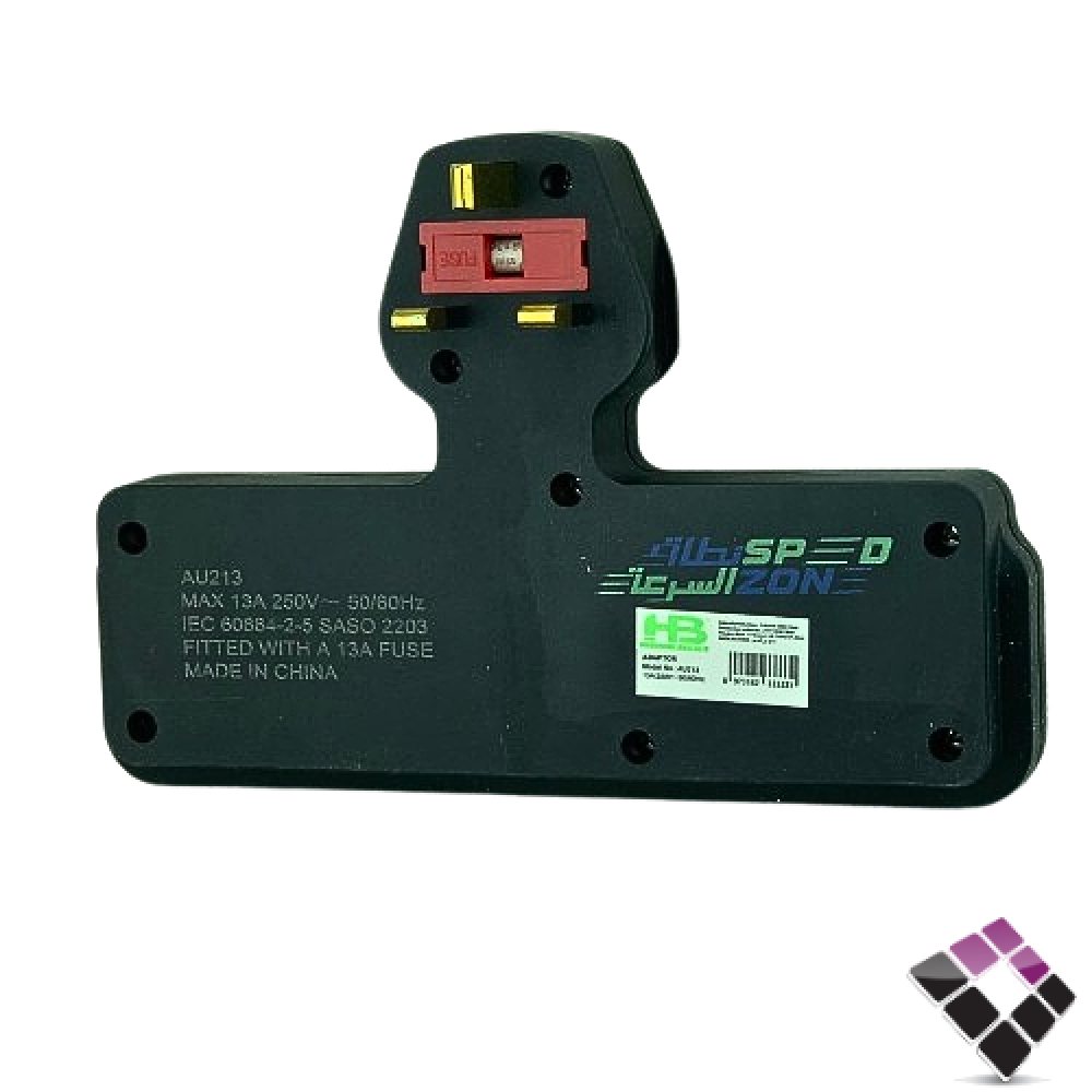 قسام مسطرة موزع افياش كهرباء HB صيني 3 مخارج 13A لون اسود رقم AU213-B