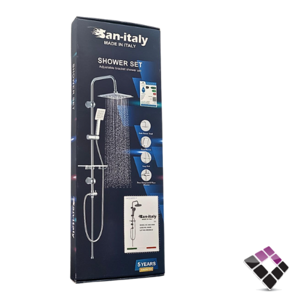 طقم شاور دش SAN ITALY ايطالي لون أسود عمود + طاسة مطري مدورة مع لي و سماعة رقم 0083B