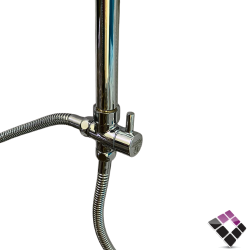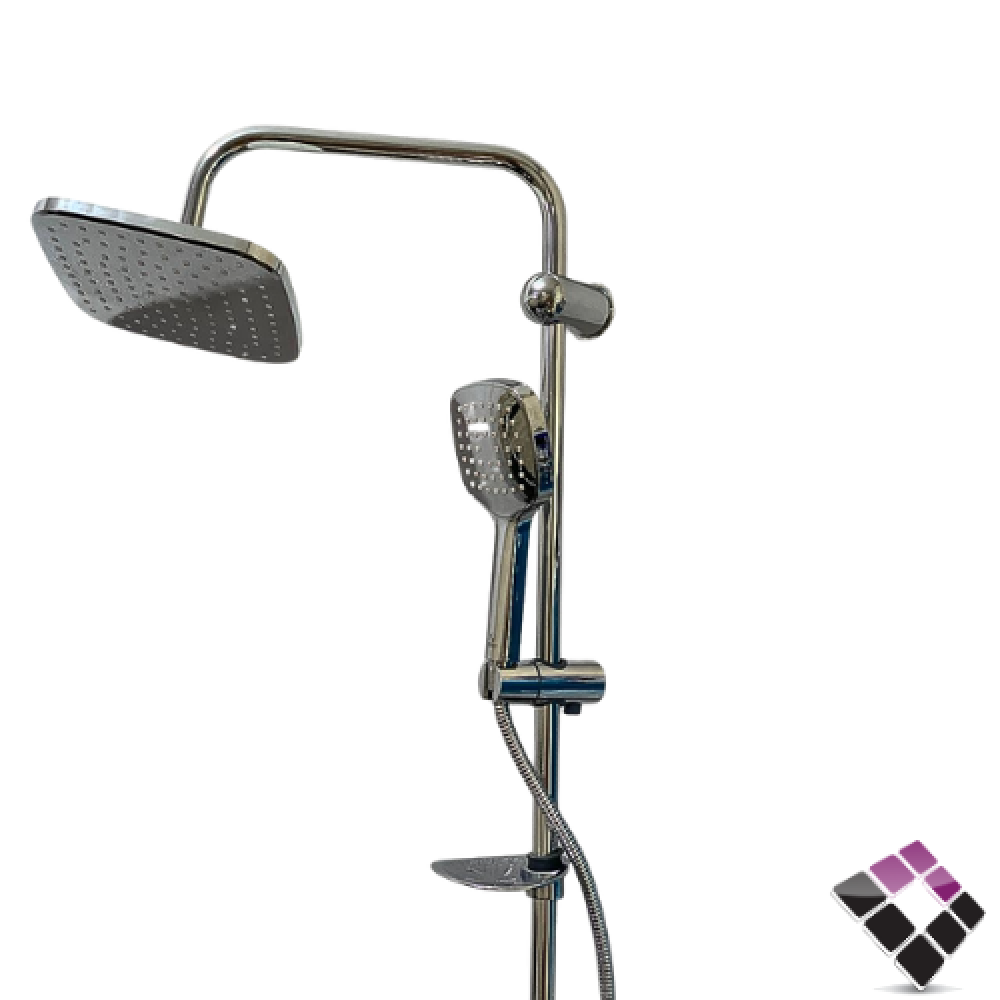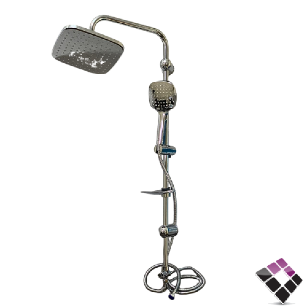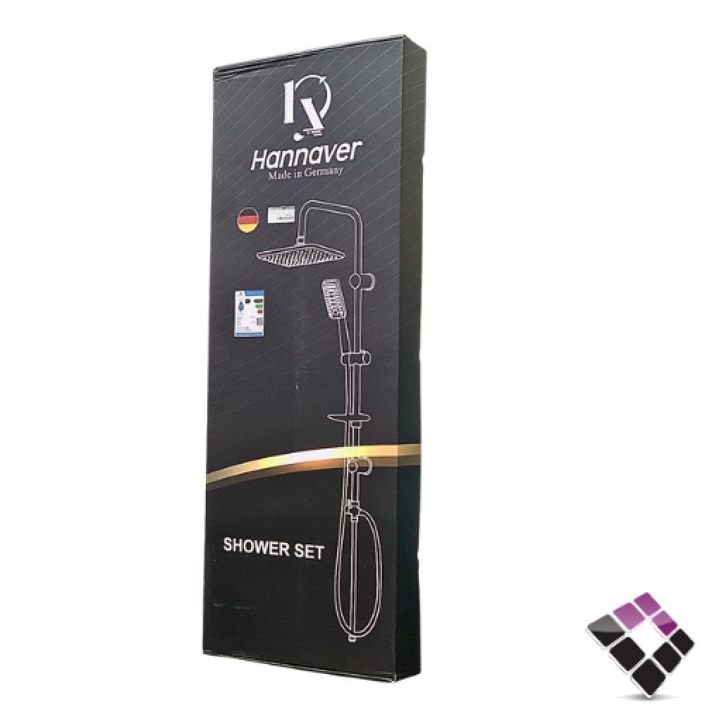 مسطرة دش ماسورة + لي و سماعة مربعة + قسام + صبانة + طاسة مربعة مبرومة كبيرة 23×23 كروم Hannaver الماني لون فضي