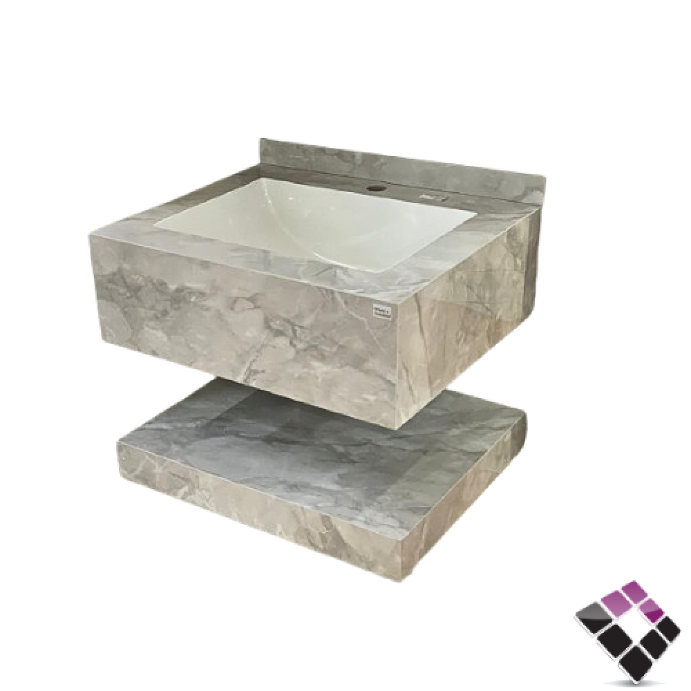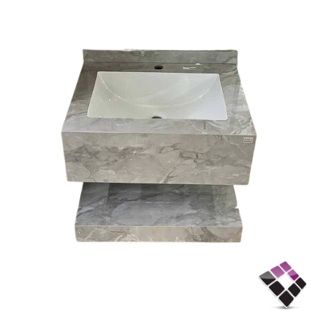 مغسلة كبينة بورسلان رخامي Orient standard معلق لون رمادي فاتح رخامي 60CM + مراية إضاءة LED رقم/ 12212114.60