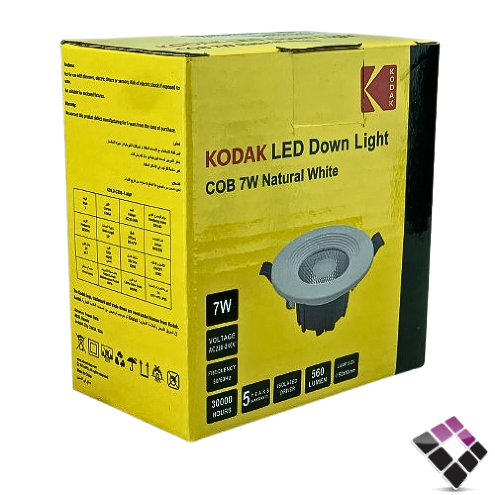 كشاف LED سبوت لايت داخلي 2"× 7 سم KODAK موديل كوب عدسة COB إضاءة 4000K كريمي 7W رقم KDL3-COB-7-NW