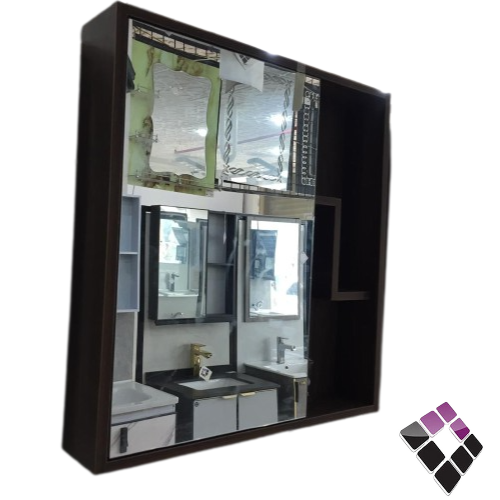 مغسلة دولاب خشب معالج plywood بليوود لون بني خشبي حوض خزف Orent Standard صيني 60CM + صيدلية + مراية رقم OS2310111