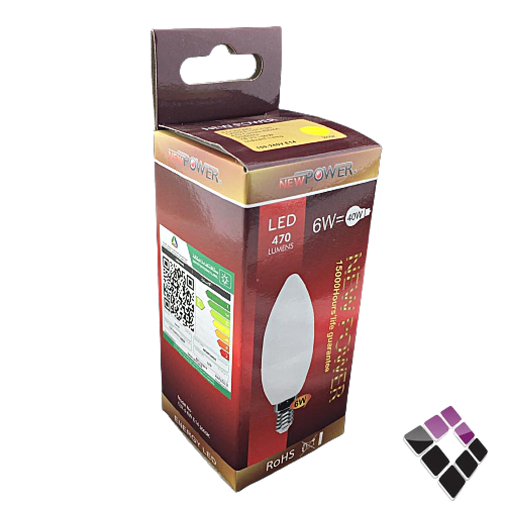 لمبة بلح LED مثلج نيو باور NEW POWER صيني سنة E14 اضاءة 3000K أصفر 6W...رقم الصنف (2540605) نيو باور NEW POWER