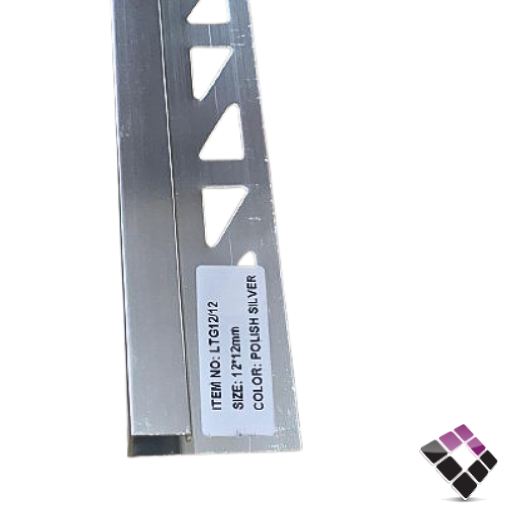 زاوية نهاية سيراميك المنيوم مربع DAR صيني لون كروم لماع مقاس 12mmكبير طول 2.5 متر رقم ALG12