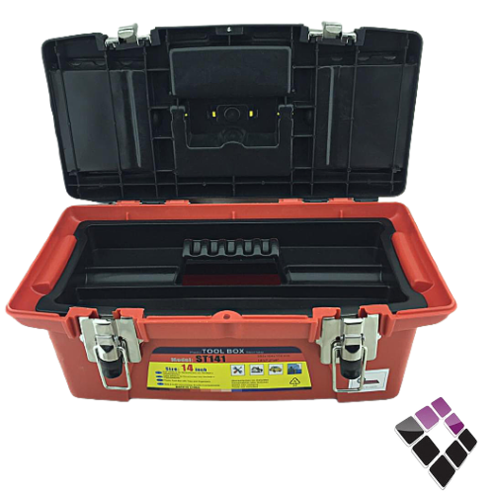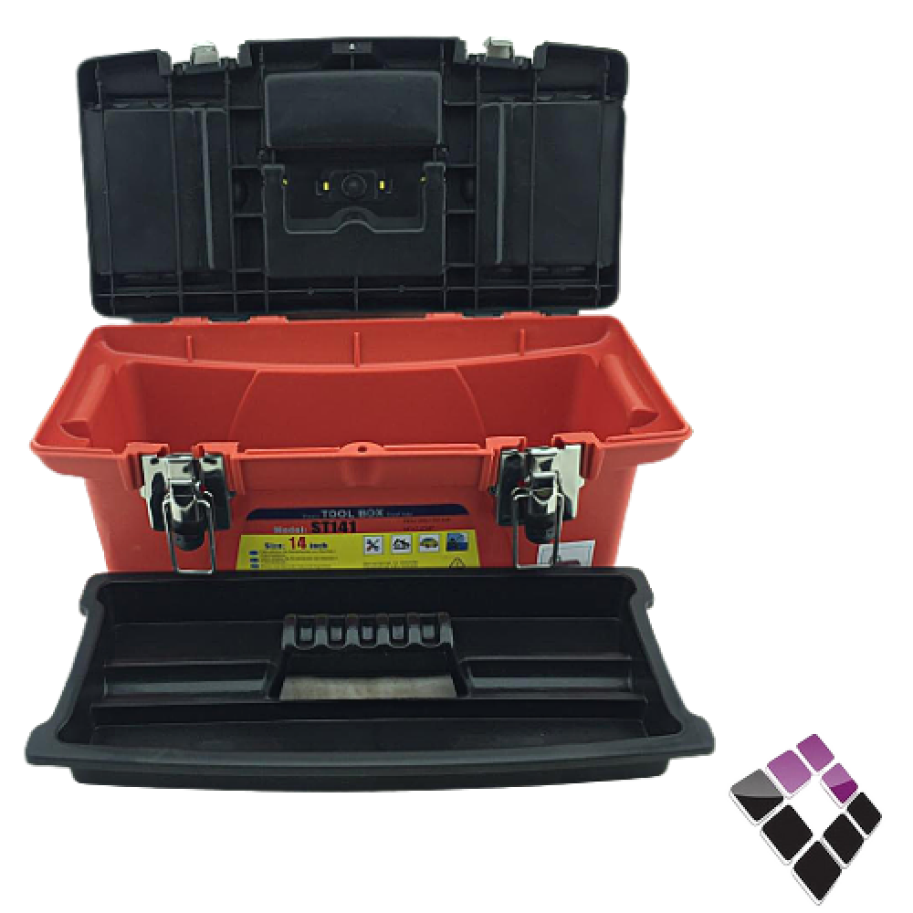 شنطة عدة LAURANT صيني بلاستيك لون أحمر + أسود + قفل حديد مقاس 14أنش رقم ST141