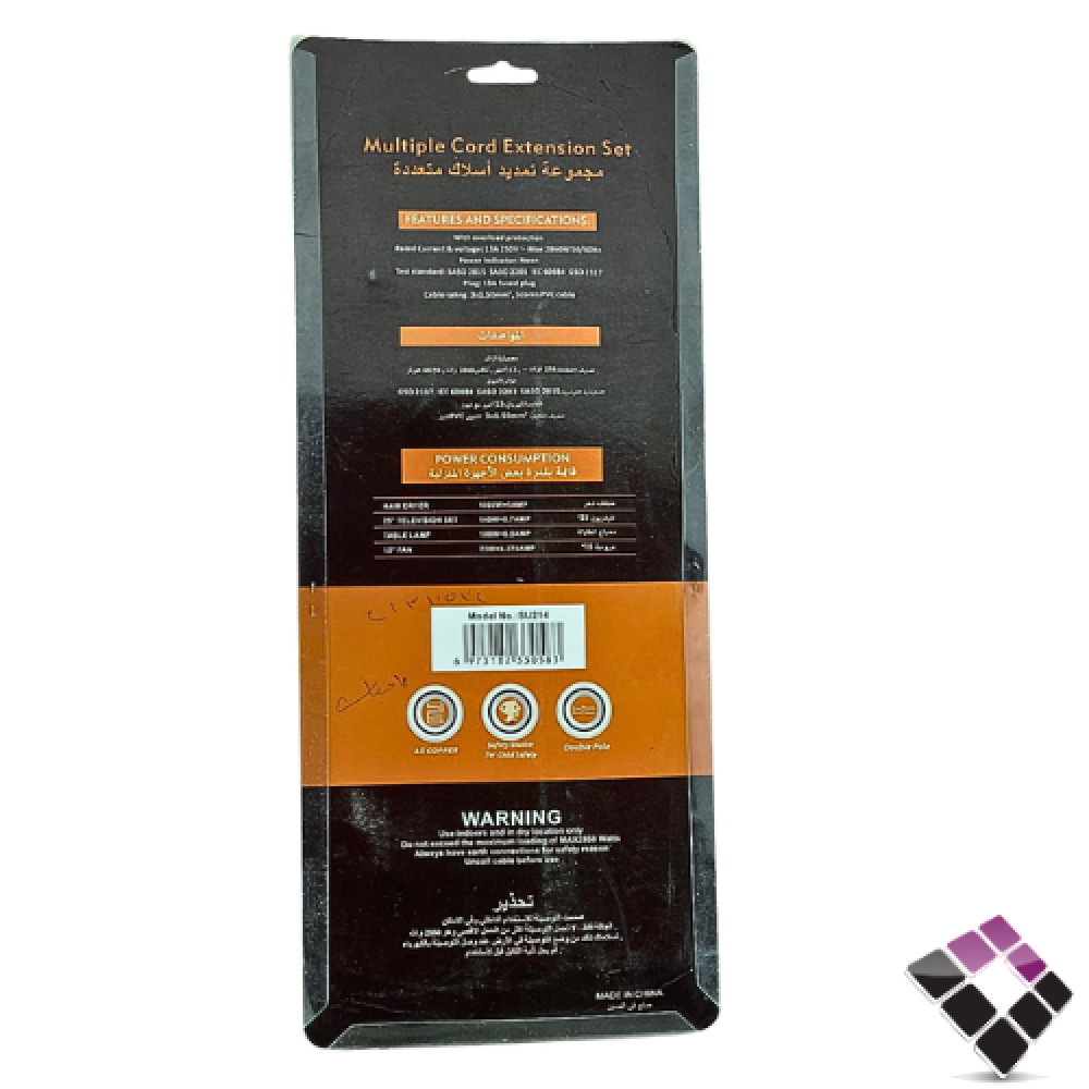 توصيلة كهرباء HB صيني 4 مخارج 13A بمفتاح طول السلك 5 متر سماكة 1.5 ملم رقم SU214