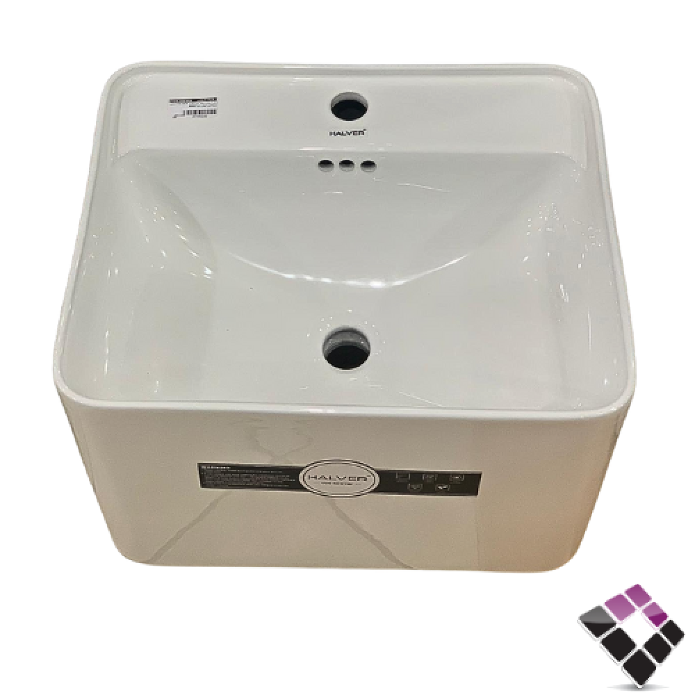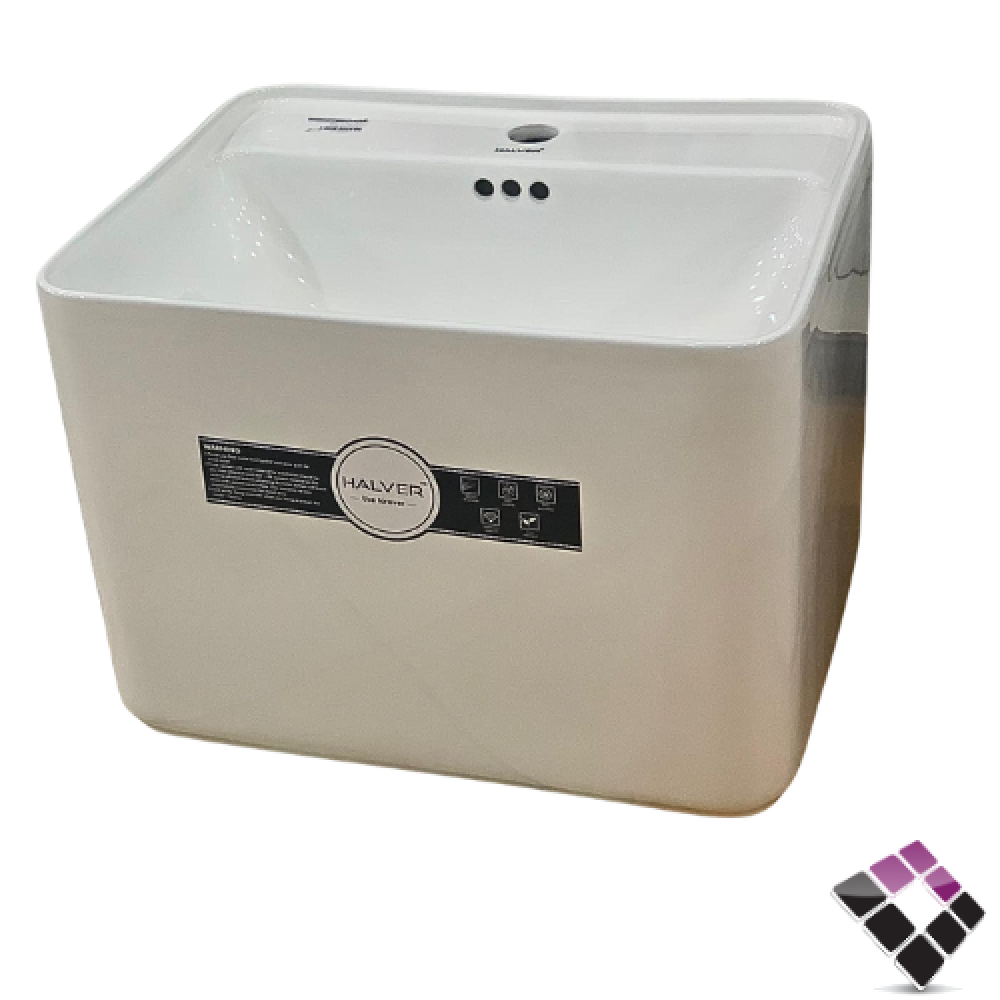 مغسلة خزف معلقة عمود قصير HALVER صينى مربعة لون أبيض رقم 40067