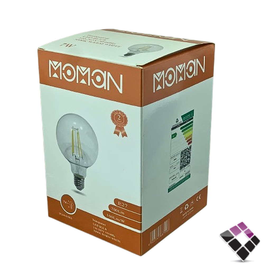 لمبة كروي LED شفاف موديل G125 فلمنت أعواد نيو باور MomaN سنة E27 اضاءة 2500K أصفر 7W