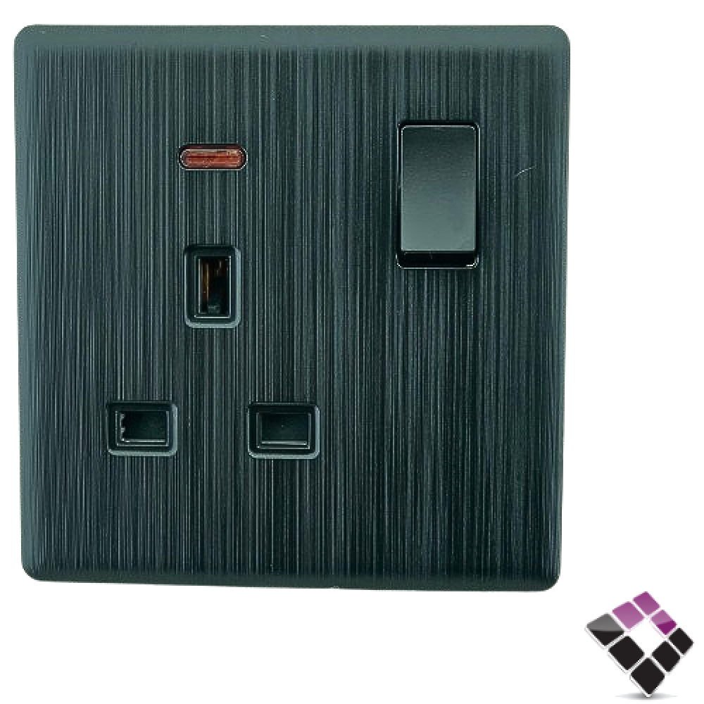 فيش مع مفتاح مفرد 13A موديل SLIM بيانو R.VISION الرائد العربي سعودي لون أسود رقم A2-B011-33