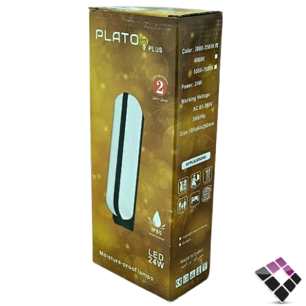 كشاف سور LED خارجي PLATO وتر بروف جرم بلاستيك أسود اسطواني إضاءة من جهتين أصفر 24W