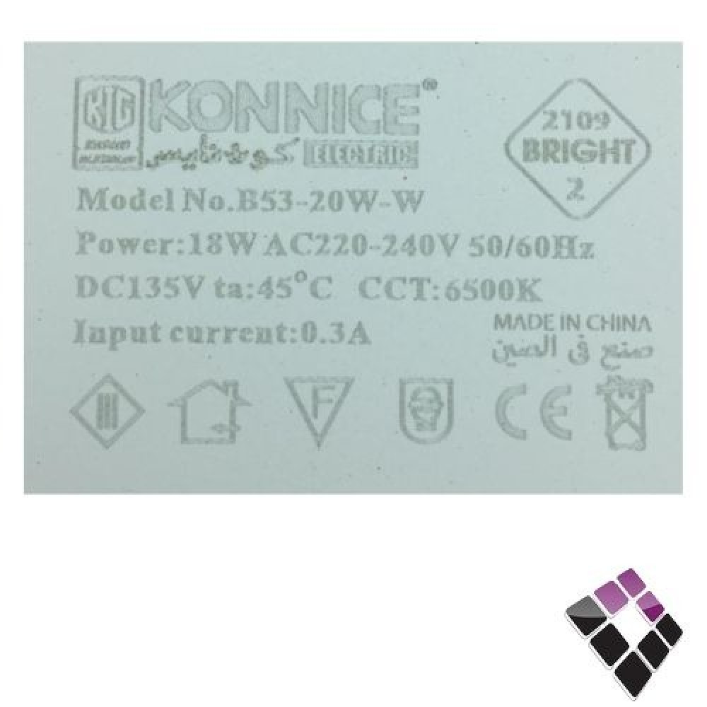 كشاف LED بنل خارجي لطش 8"× 20 سم KONNICE كون نايس صيني إضاءة 6500K أبيض B53-20W-W