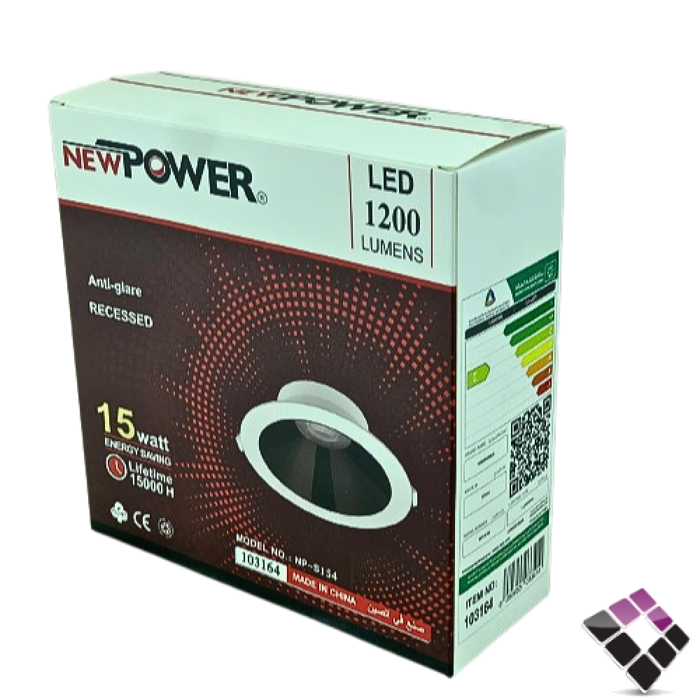 كشاف داخلي LED مع مانع توهج NEW POWER إضاءة 4000K كريمي جرم خارجي أبيض داخلي أسود مقاس 6"×15W رقم