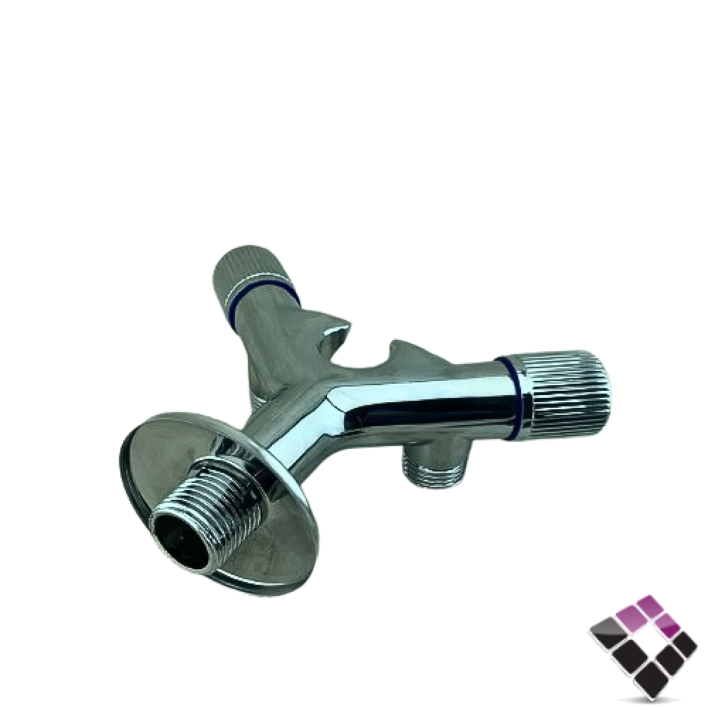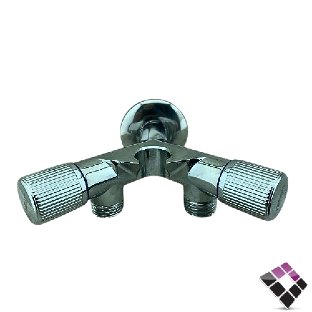 محبس زاوية مخرجين للماء + حامل شطاف ORISA صيني لون كروم رقم 90190