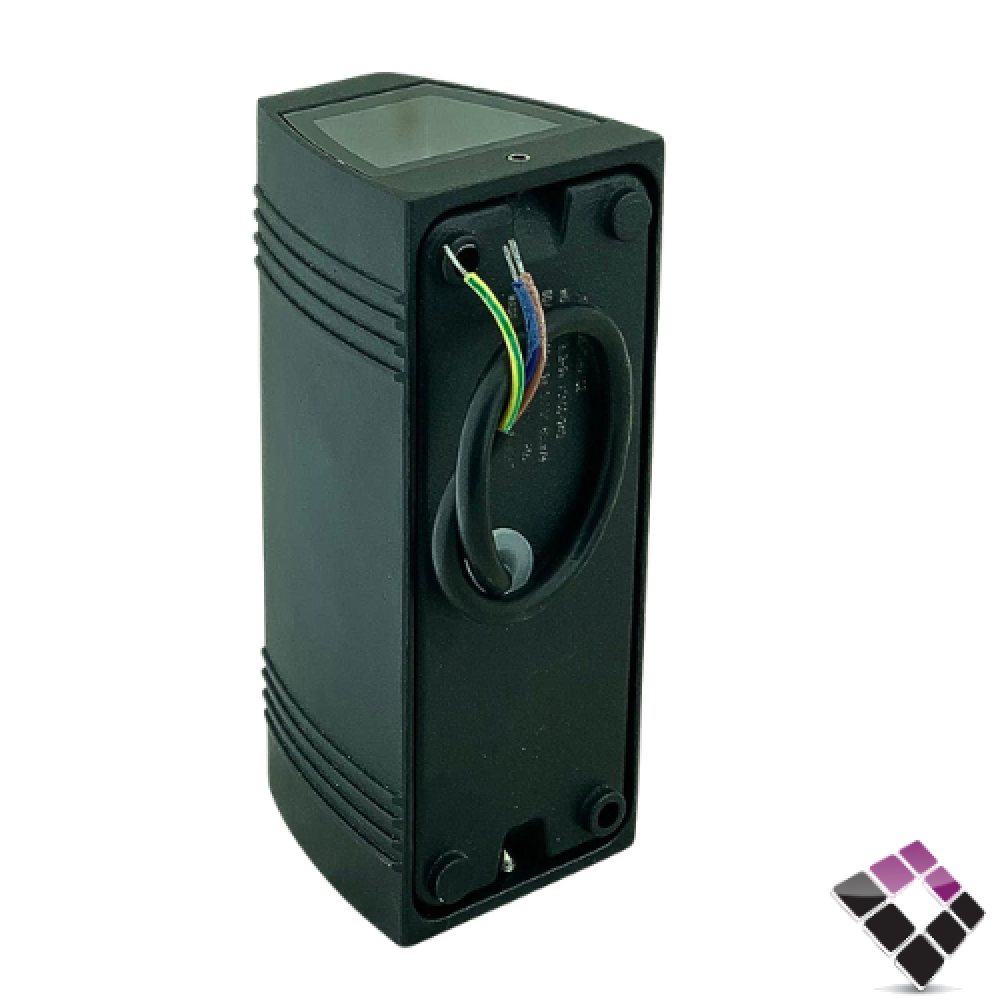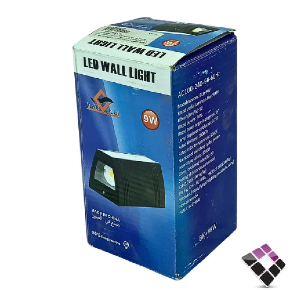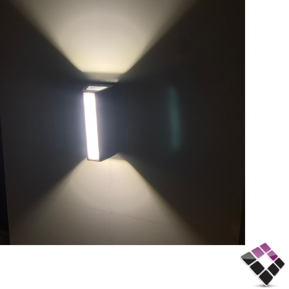 كشاف سور LED المنيوم خارجي لطش اصول التميز صيني جرم أسود إضاءة 1 لمبة أعلى + 1 لمبة اسفل + إضاءة طولية مثلجة أمامية لون أصفر BK+WW