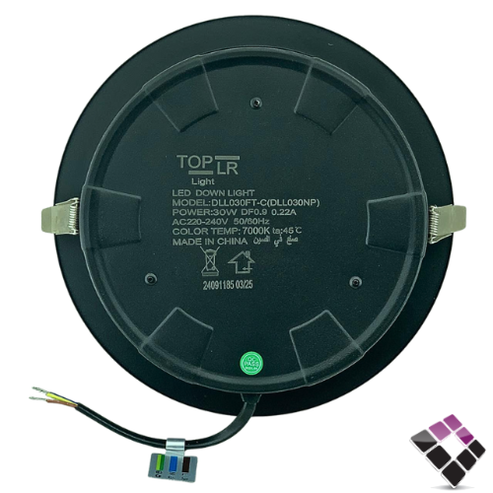 كشاف داخلي LED مانع توهج TOPLR بنل مثلج SMD إضاءة 7000K أبيض جرم خارجي أسود كامل مقاس 8"×30W