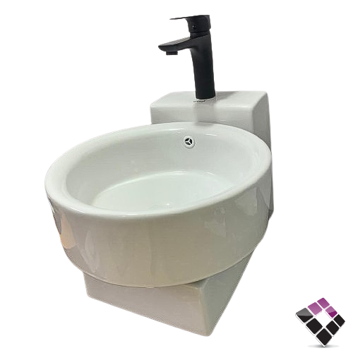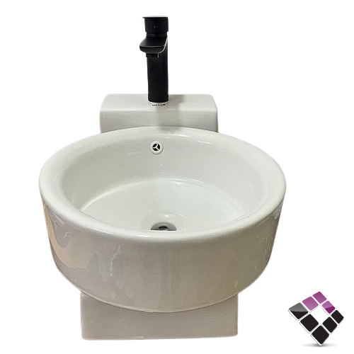مغسلة خزف OTTO صيني معلقة قطعتين قاعدة خزف + حوض خزف دائري لون أبيض رقم 32418