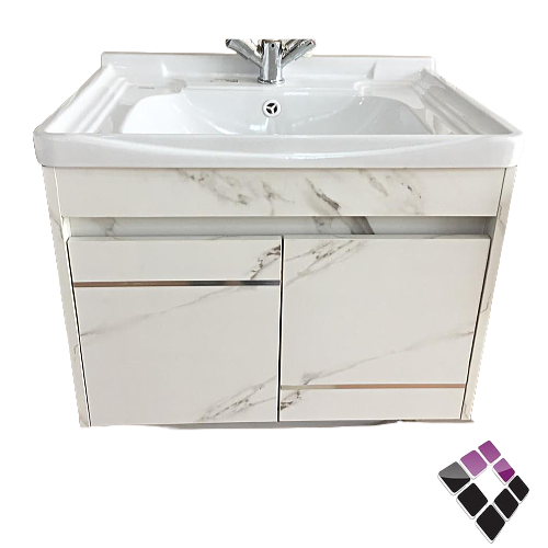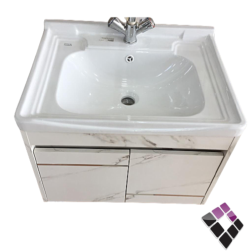 مغسلة دولاب خشب معالج plywood بليوود لون أبيض + رمادي رخامي حوض خزف Orent Standard صيني 60CM + مراية LED رقم OS2310205