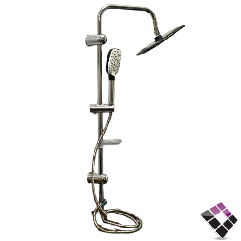 طقم شاور دش تركي TUCRA عمود كروم + طاسة مربعة 24سم لون أبيض + أسود مع لي و سماعة + صبانة رقم 22085