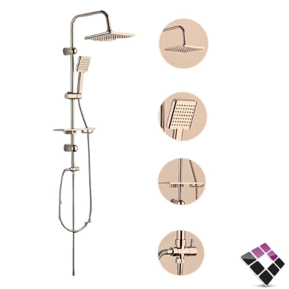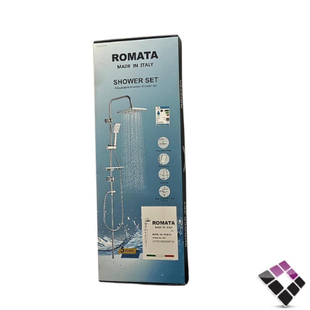 طقم شاور دش ROMATA ايطالي لون كروم عمود + طاسة مطري مربعة مع لي و سماعة رقم 001