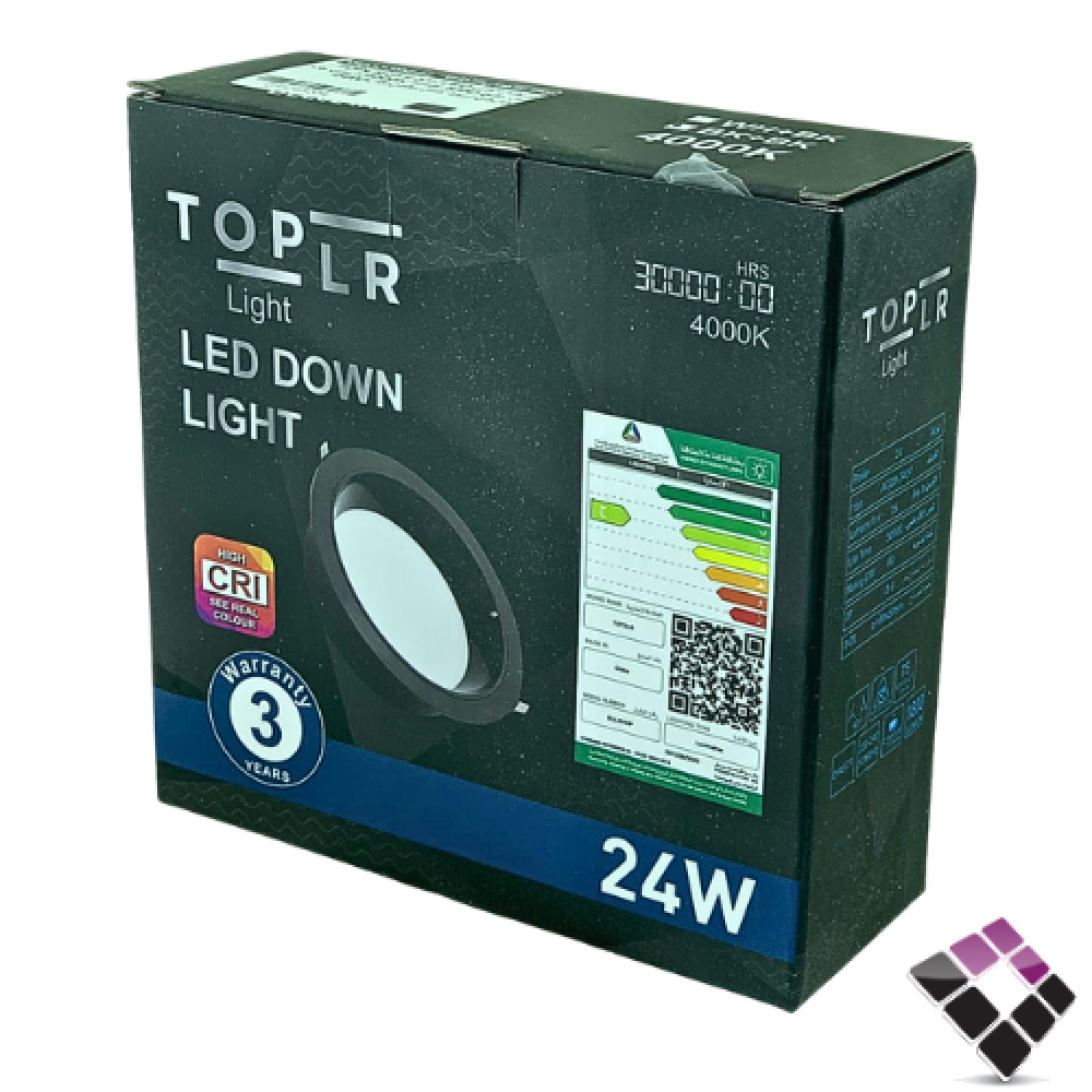كشاف داخلي LED مانع توهج TOPLR بنل مثلج SMD إضاءة 4000K كريمي جرم خارجي أسود كامل مقاس 5"×24W