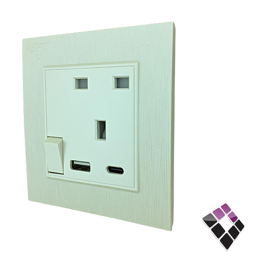 فيش مع مفتاح 13 أمبير + USB + Type-C تايب سي LUXIFY صيني لون لؤلؤي رقم 250000