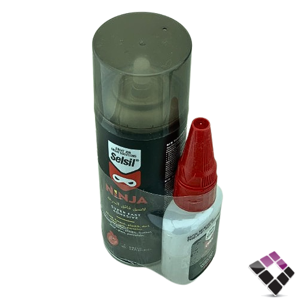 غراء عصار + بخاخ منشف Selsil تركي مناسب للخشب و البلاستيك و المعادن و الجلود رقم 103011 مقاس 50جرام × 200 مل