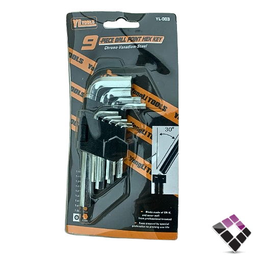 طقم مفتاح النكي سداسي YL صينى 9 قطع مقاس قصير
