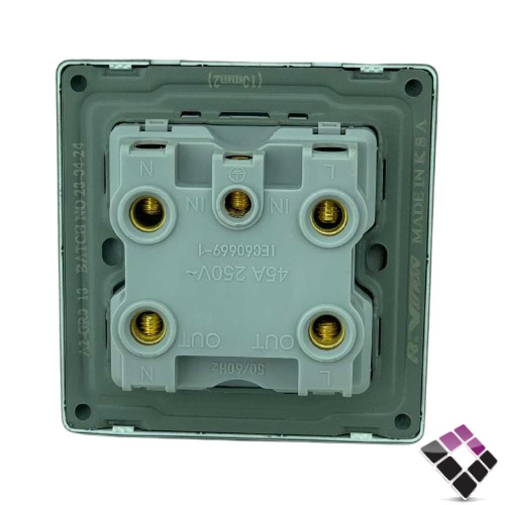 مفتاح مكيف 45A مقاس 7×7 موديل SLIM بيانو R.VISION الرائد العربي سعودي لون سلفر رقم A2-B0-74