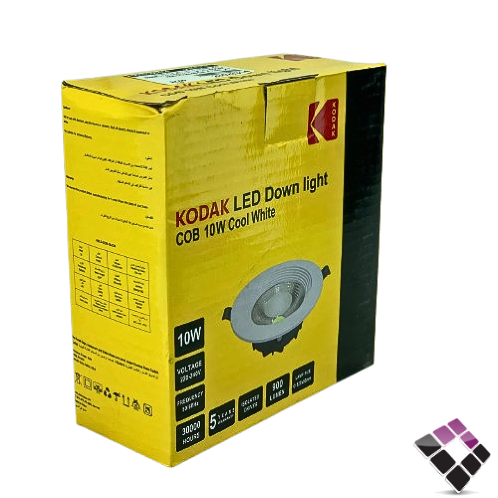 كشاف LED سبوت لايت داخلي 3"× 10 سم KODAK موديل كوب عدسة COB إضاءة 4000K كريمي 10W رقم KDL3-COB-10-NW