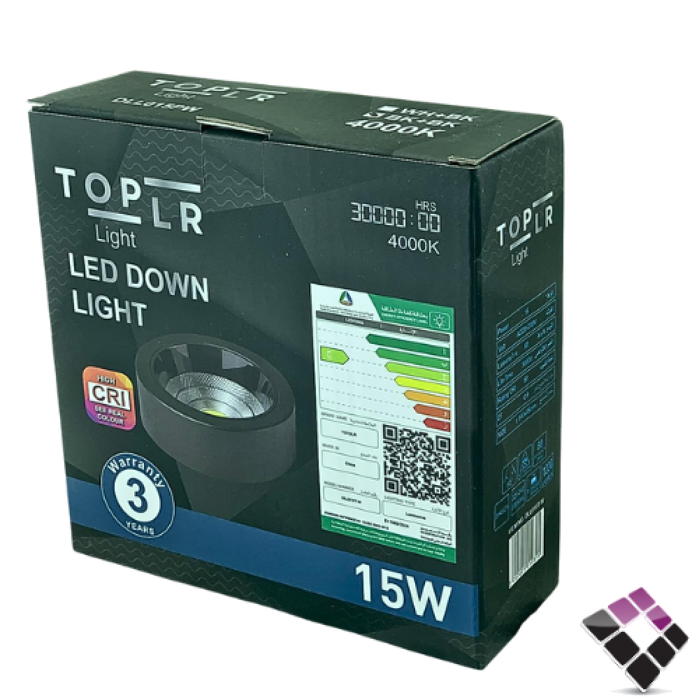 كشاف خارجي LED لطش مانع توهج جرم أسود / أسود عدسة كوب COB إضاءة 4000k كريمي TOPLR صيني 14 سم 15W