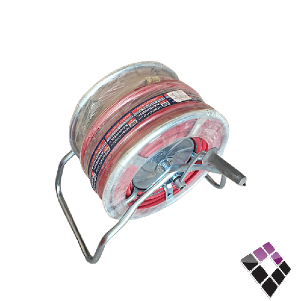 لي ماء العايد أحمر مع بكرة حديد طول 30 متر مقاس 3/4"