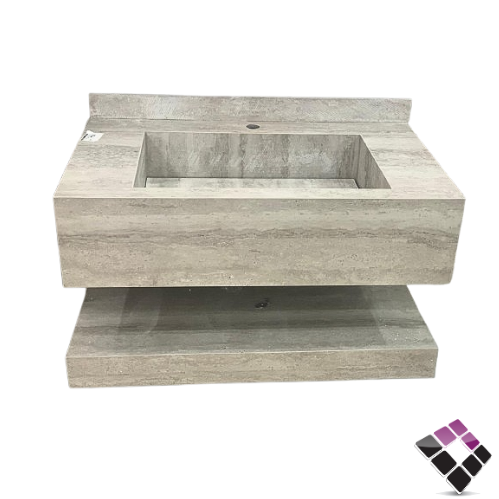 مغسلة كبينة + حوض حجر رخام موديل شلال Orient standard صيني معلق لون رمادي فاتح رخام ترفنتينو + رف سفلي 80CM بدون مراية رقم/ OS250121