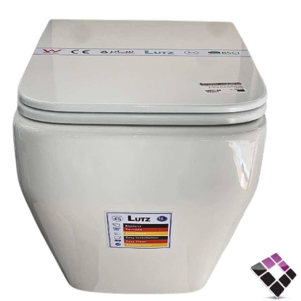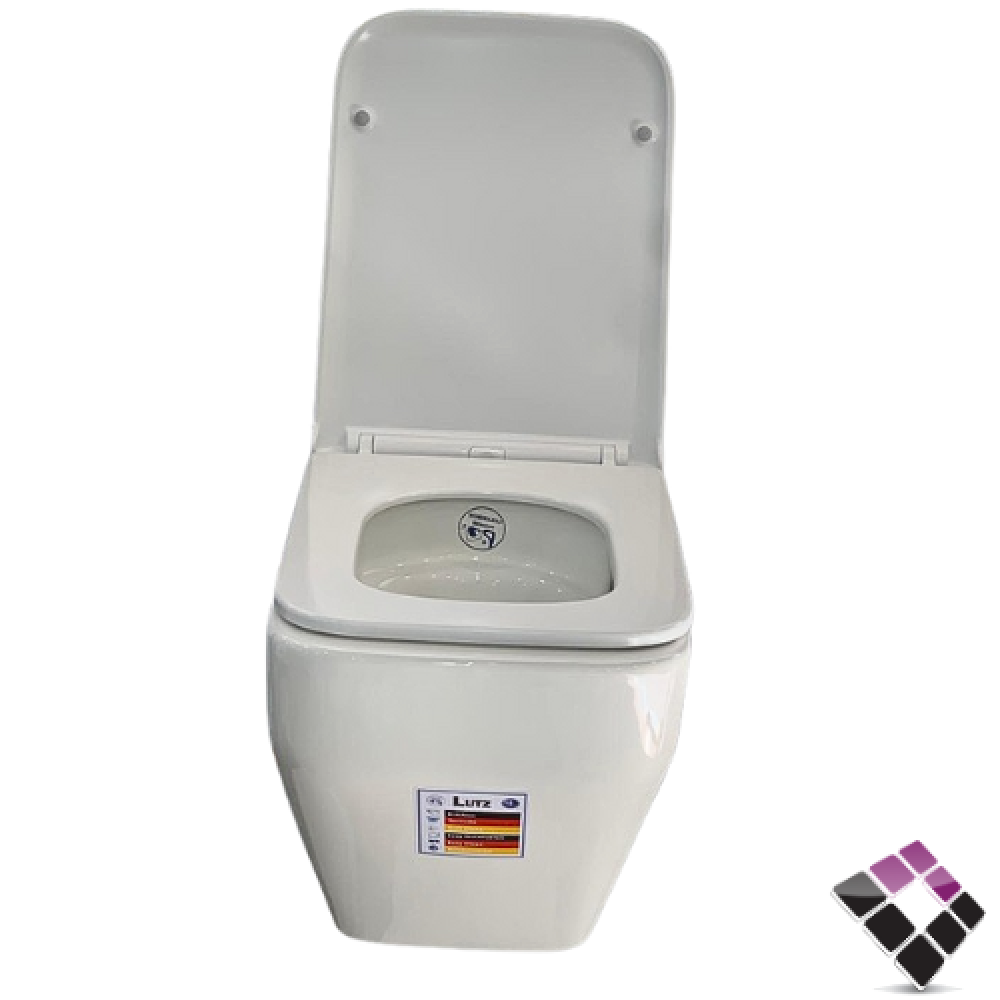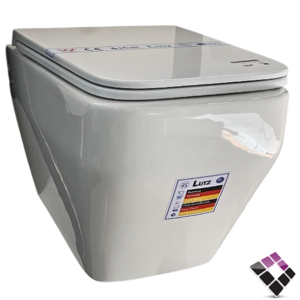 كرسي أفرنجي معلق LUTZ لوتز أوربي / صيني موديل مربع نظام تصريف مطور Rimless + Tornado مع غطاء هدرولك UF مقاوم رقم LTZ-062 المنتج الجديد