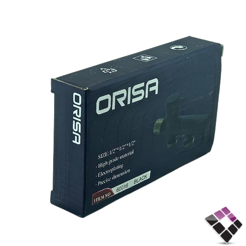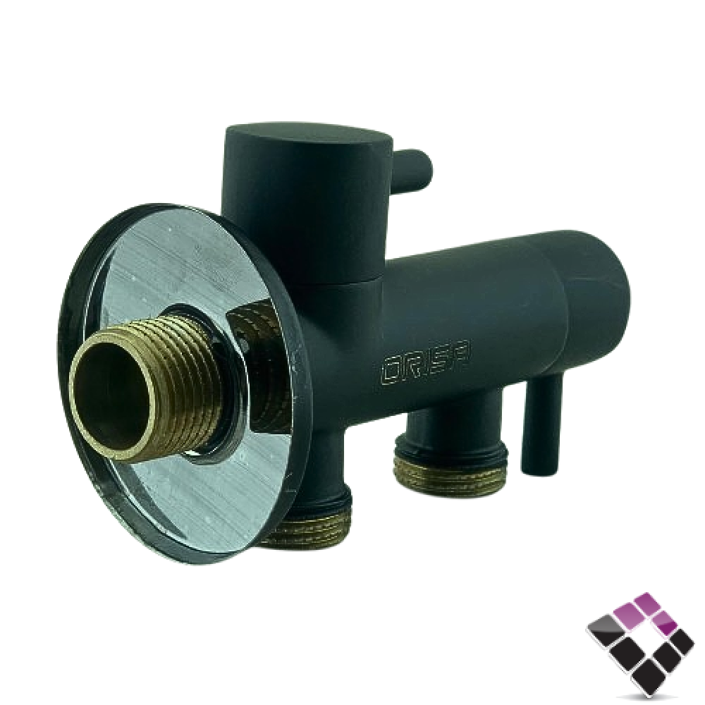 محبس زاوية مزدوج 2×1 مسكة قلم نحاس مطلي لون أسود ORISA صيني 1/4 فتحة رقم 60016