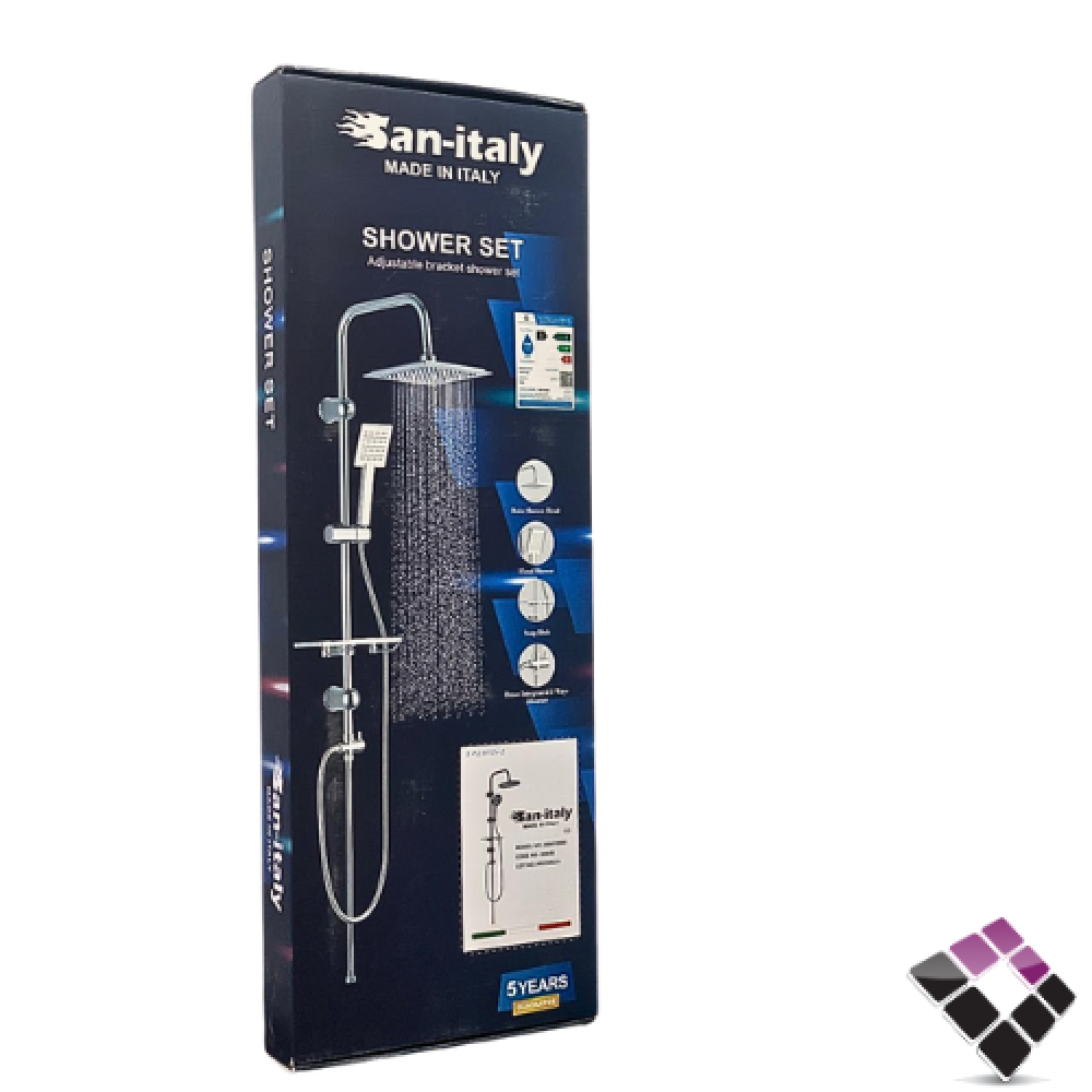 طقم شاور دش SAN ITALY ايطالي لون أسود عمود + طاسة مطري مدورة مع لي و سماعة رقم 0085B