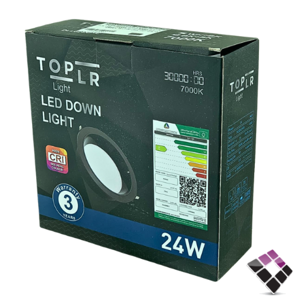 كشاف داخلي LED مانع توهج TOPLR بنل مثلج SMD إضاءة 7000K أبيض جرم خارجي أسود كامل مقاس 5"×24W