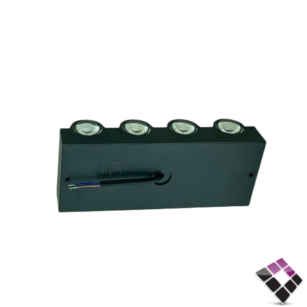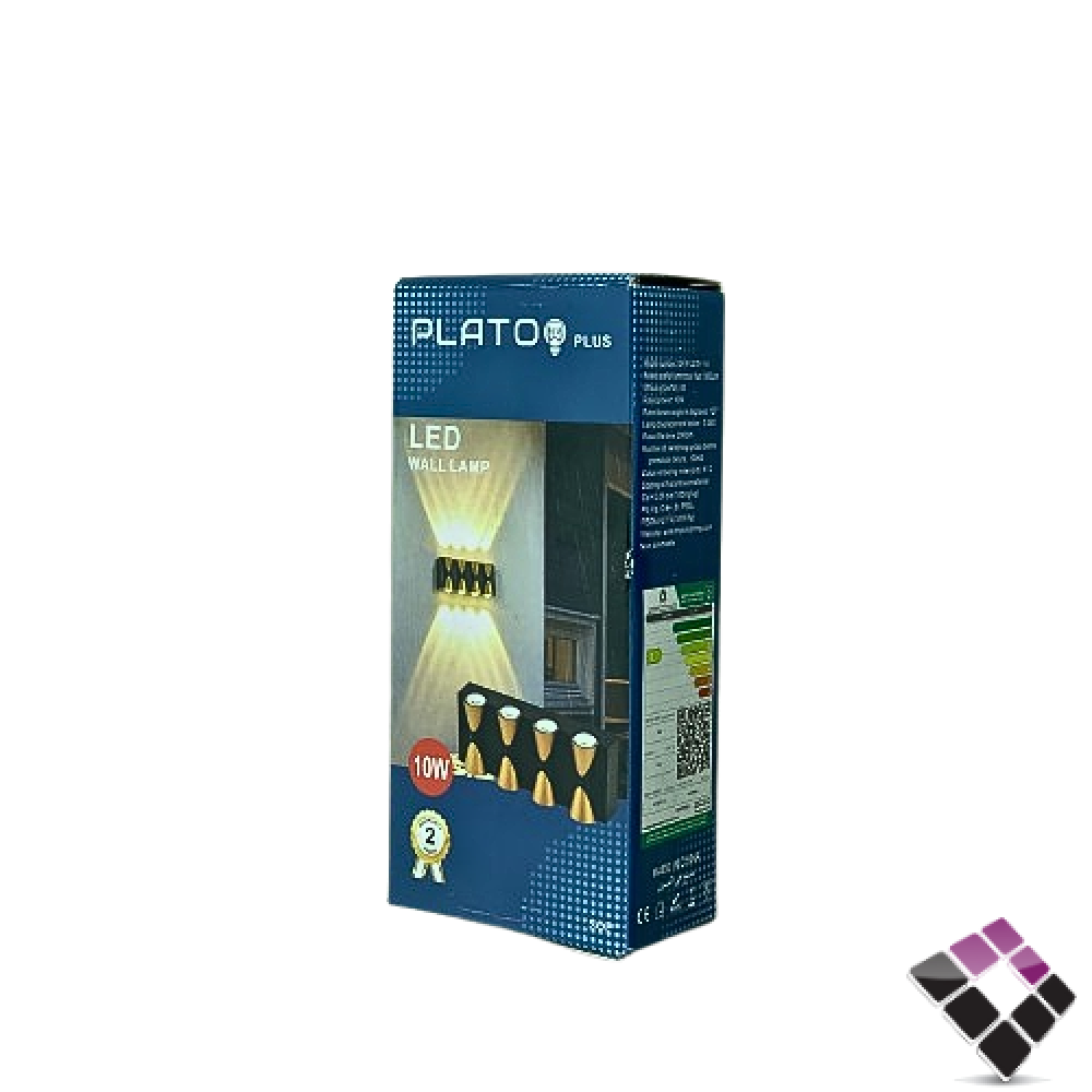 كشاف سور LED خارجي PLATO-PLUS وتر بروف جرم بلاستيك أسود + ذهبي موديل مبخرة إضاءة 4 فوق + 4 تحت أصفر 10W
