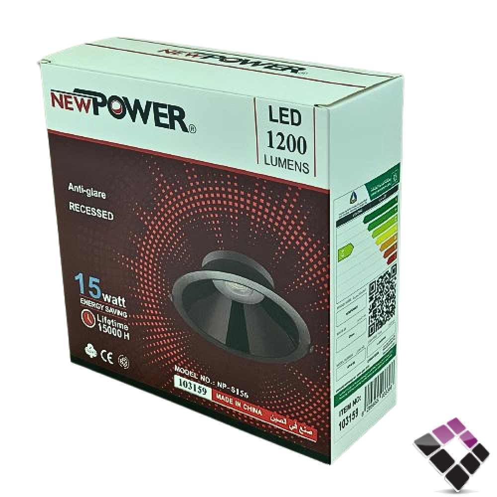 كشاف داخلي LED مع مانع توهج NEW POWER إضاءة 6500K أبيض جرم خارجي أسود داخلي أسود مقاس 6"×15W رقم